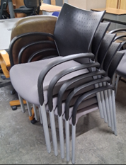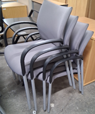 1 x meeting chairs with upholstered seat in grey with black plastic armrests and backrest on a silver 4 leg frame.