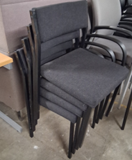 4 x Visitors / reception chairs upholstered in dark grey upholstery on a black 4 leg frame.