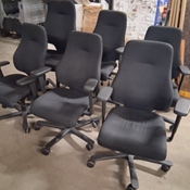 Selection of ‘Preloved’ upholstered operator chairs on 5 star black bases. (£40-£80+vat each)